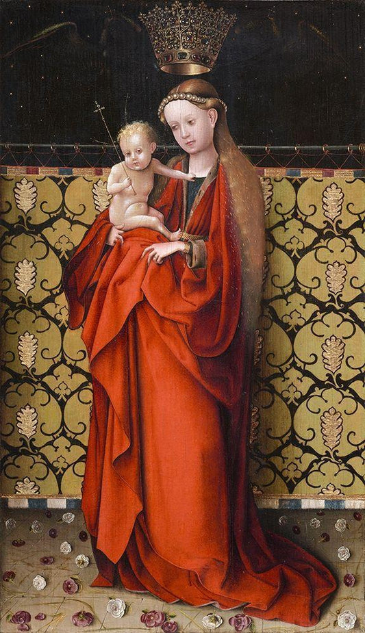 The Virgin Crowned by Angels White Modern Wood Framed Art Print with Double Matting by Lochner, Stefan