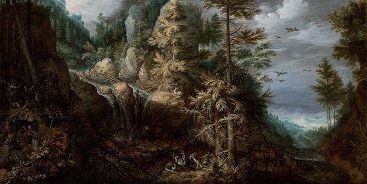 Landscape with the Temptation of Saint Anthony White Modern Wood Framed Art Print with Double Matting by Savery, Roelandt