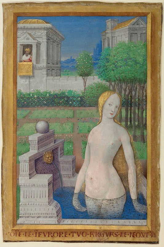 Bathsheba Bathing White Modern Wood Framed Art Print with Double Matting by Bourdichon, Jean