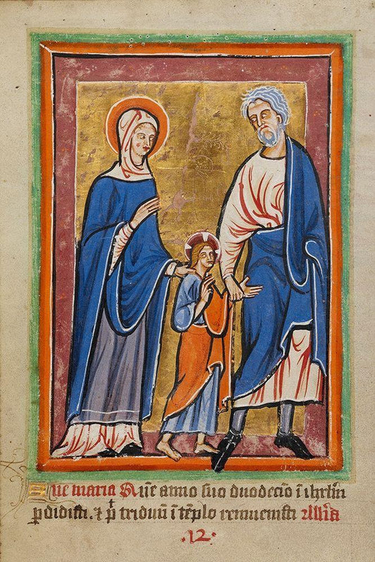Christ Led to Jerusalem by Mary and Joseph White Modern Wood Framed Art Print with Double Matting by Unknown 12th Century Illuminator