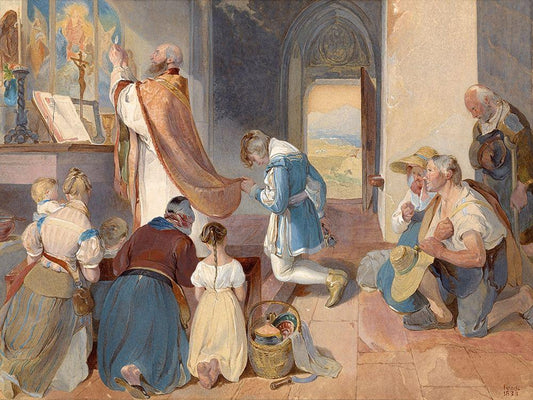 Fridolin Assists with the Holy Mass White Modern Wood Framed Art Print with Double Matting by Fendi, Peter