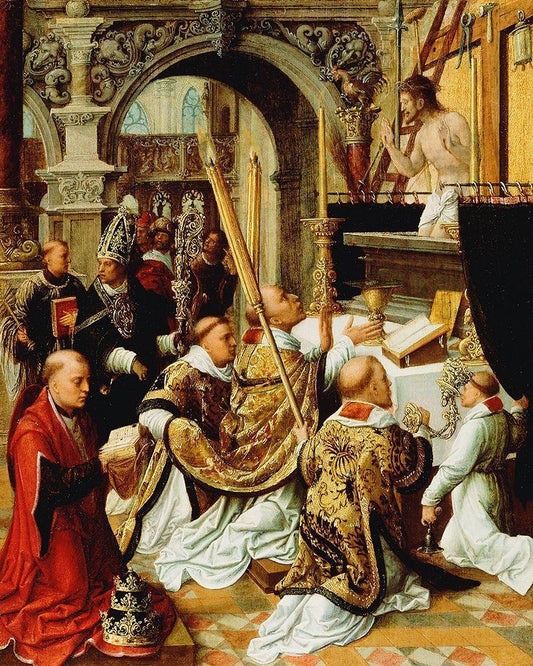The Mass of Saint Gregory the Great White Modern Wood Framed Art Print with Double Matting by Adriaen, Ysenbrandt,