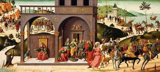 Arrival of Saint Ursula at Cologne White Modern Wood Framed Art Print with Double Matting by Daddi, Bernardo