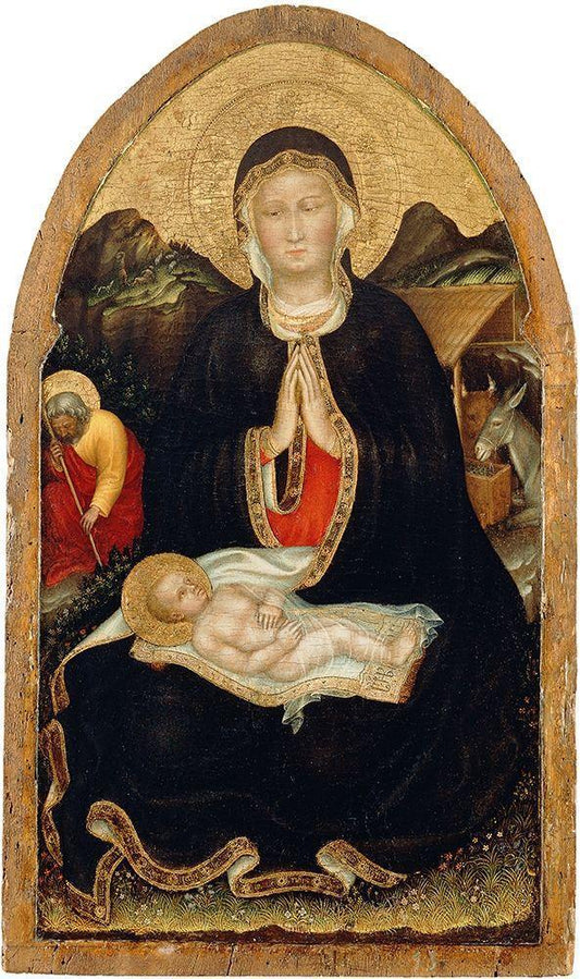 Nativity White Modern Wood Framed Art Print with Double Matting by da Fabriano, Gentile