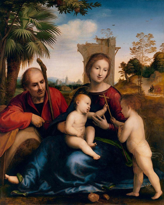 The Rest on the Flight into Egypt with St. John the Baptist White Modern Wood Framed Art Print with Double Matting by della Porta, Baccio