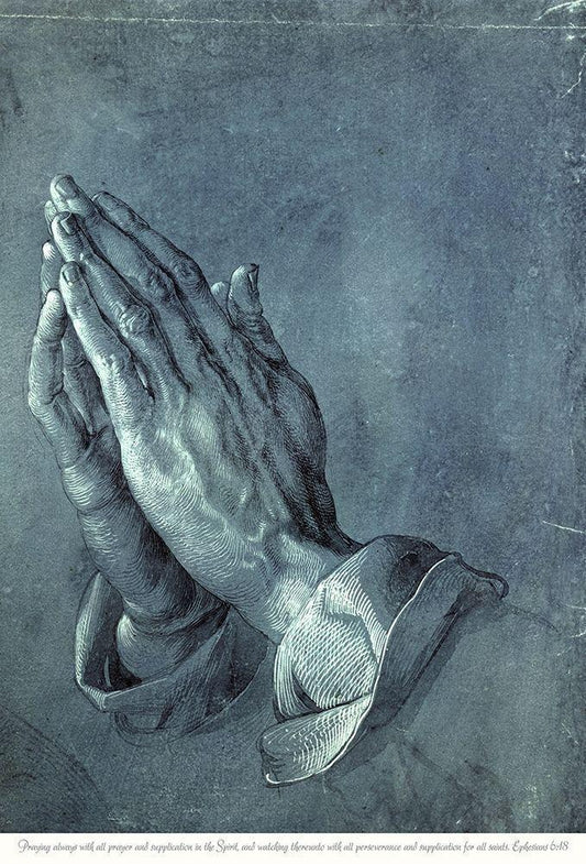 Praying Hands with Verse White Modern Wood Framed Art Print with Double Matting by Durer, Albrecht
