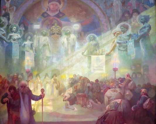 The Holy Mount Athos White Modern Wood Framed Art Print with Double Matting by Mucha, Alphonse