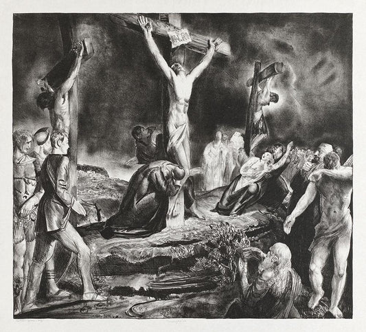 Crucifixion of Christ White Modern Wood Framed Art Print with Double Matting by Bellows, George