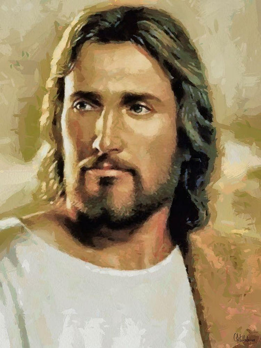 Jesus White Modern Wood Framed Art Print with Double Matting by Medeiros, Celito