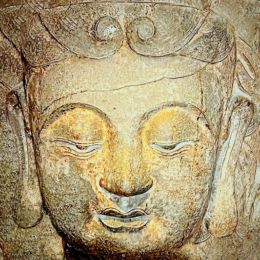 Buddha White Modern Wood Framed Art Print with Double Matting by Tenoever, William