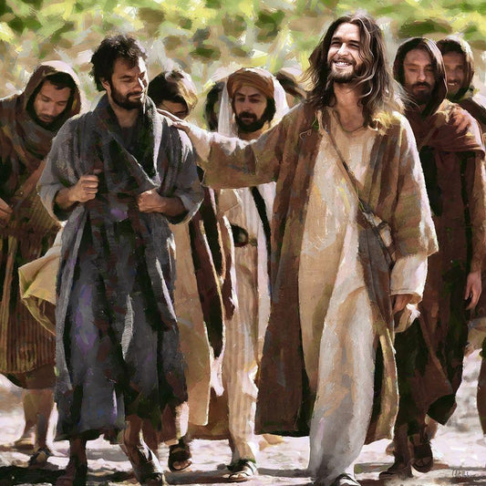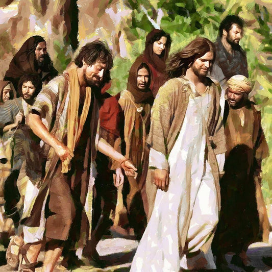 Walking Jesus White Modern Wood Framed Art Print with Double Matting by Medeiros, Celito
