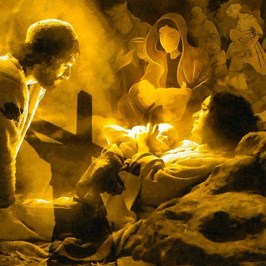 Pieta White Modern Wood Framed Art Print with Double Matting by Medeiros, Celito
