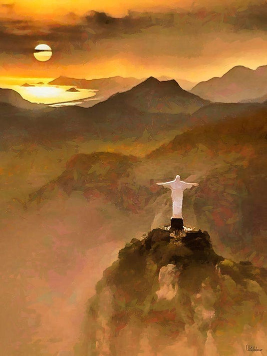 Jesus in Rio White Modern Wood Framed Art Print with Double Matting by Medeiros, Celito