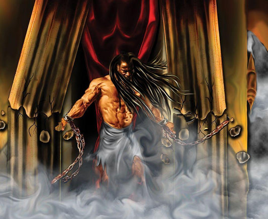 Samson in the Temple White Modern Wood Framed Art Print with Double Matting by Unknown