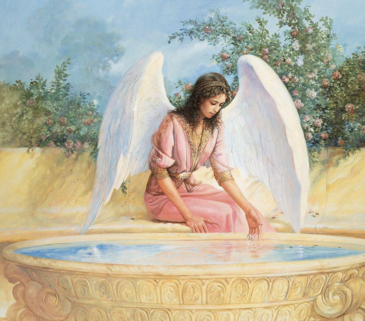 Angel and Fountain White Modern Wood Framed Art Print with Double Matting by Unknown