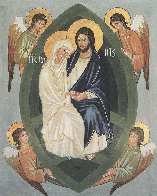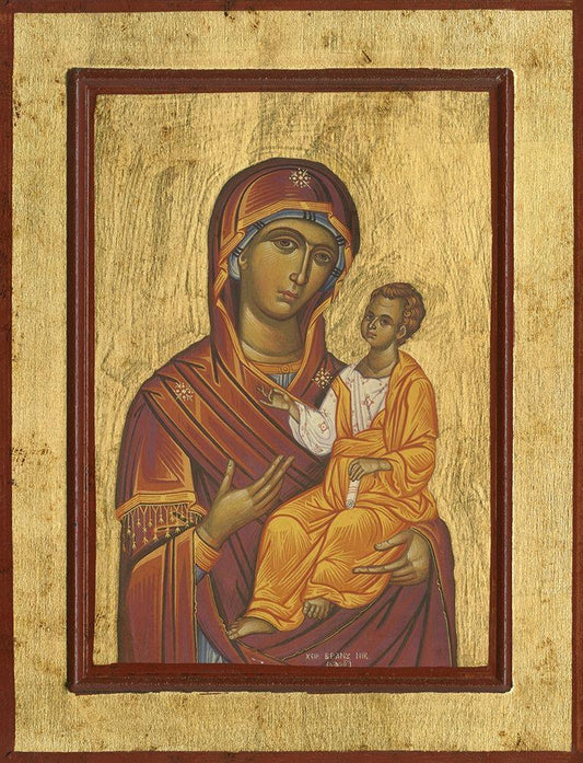 Byzantine Icon Haloed Virgin Mary with Baby Jesus White Modern Wood Framed Art Print with Double Matting by anonymous