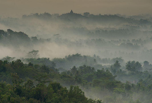 Temple In The Mist White Modern Wood Framed Art Print with Double Matting by Wrobel, Karsten