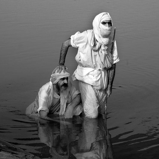 Face Of Devotees White Modern Wood Framed Art Print with Double Matting by Biswas, Kuntal