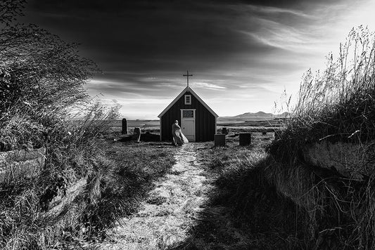 Baoadakirkja - Summer Sunrise White Modern Wood Framed Art Print with Double Matting by Kovar, Petr