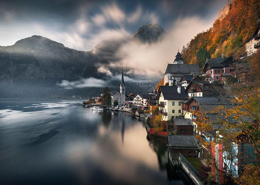 Hallstatt White Modern Wood Framed Art Print with Double Matting by Nienartowicz, Karol