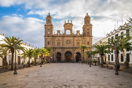 Spain-Canary Islands-Gran Canaria Island-Las Palmas de Gran Canaria-Catedral de Santa Ana-exterior White Modern Wood Framed Art Print with Double Matting by Bibikow, Walter