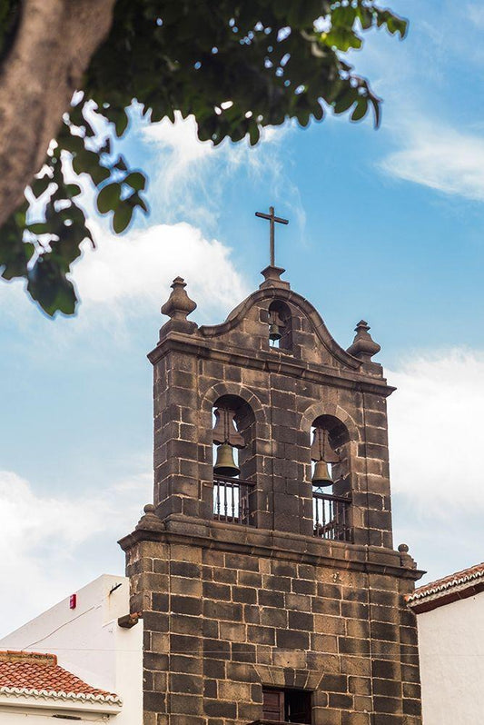 Canary Islands-Tenerife Island-Garachico-Iglesia de Santa Ana church-church bell White Modern Wood Framed Art Print with Double Matting by Bibikow, Walter