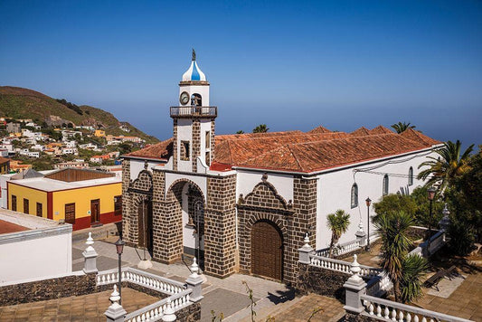 Canary Islands-El Hierro Island-Valverde-Iglesia de Nuestra Senora de la Concepcion church White Modern Wood Framed Art Print with Double Matting by Bibikow, Walter