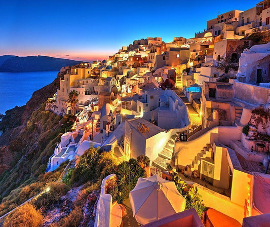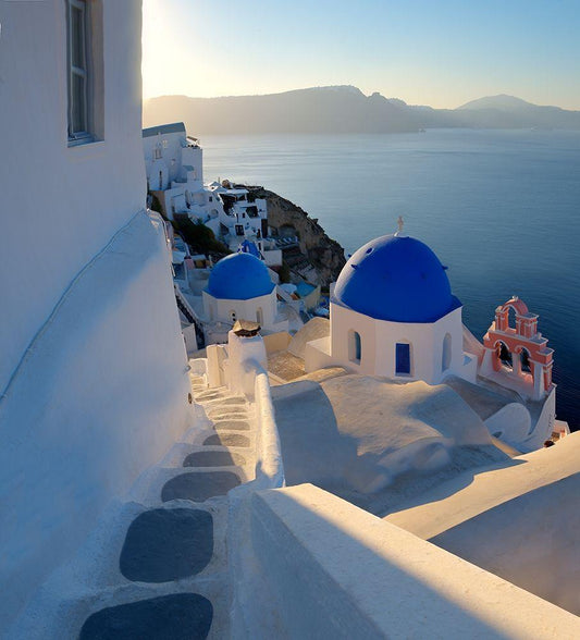 Santorini-Greece on the Mediterranean Sea White Modern Wood Framed Art Print with Double Matting by Steve Mohlenkamp