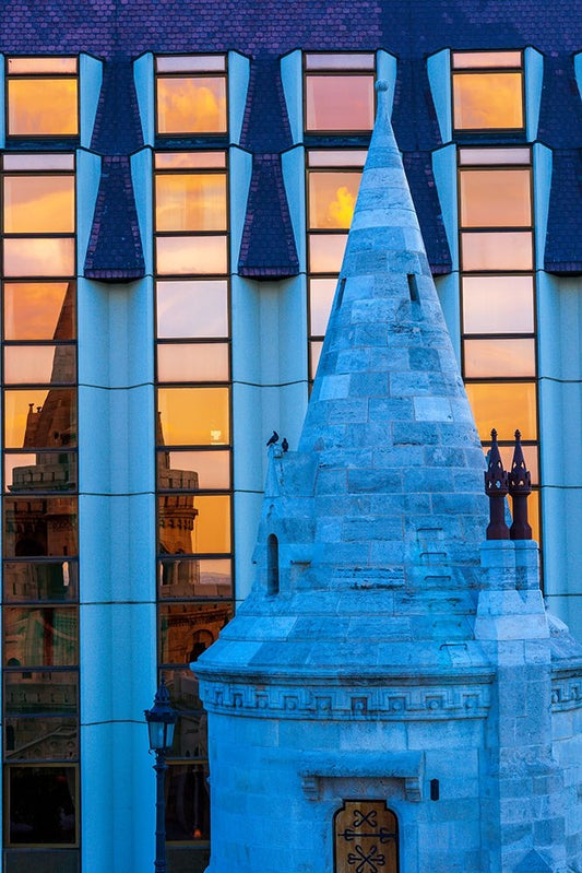 Reflection of Fishermans Bastion next to Matyas Church-Castle Hill-Buda side of Central Budapest-Ca White Modern Wood Framed Art Print with Double Matting by Haseltine, Tom