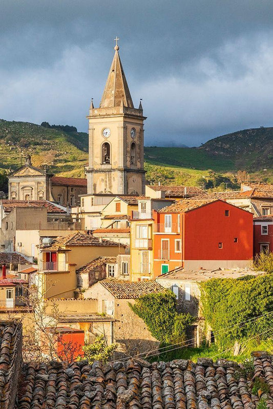 Messina Province-Novara di Sicilia The medieval hill town of Novara di Sicilia White Modern Wood Framed Art Print with Double Matting by Wilson, Emily