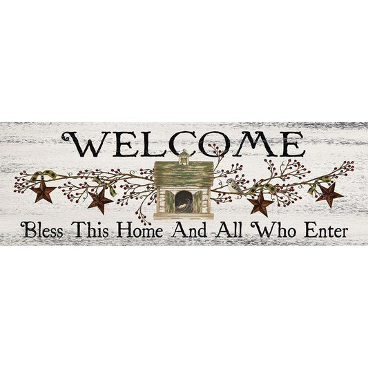Bless This Home and All Who Enter Black Modern Wood Framed Art Print with Double Matting by Spivey, Linda