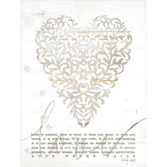 Love Never Fails with Heart Black Modern Wood Framed Art Print with Double Matting by Jacobs, Cindy