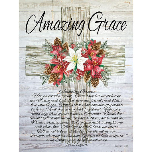 Amazing Grace Christmas Cross Black Modern Wood Framed Art Print with Double Matting by Jacobs, Cindy
