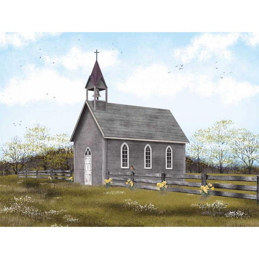 Little Brown Church Black Modern Wood Framed Art Print with Double Matting by Jacobs, Billy