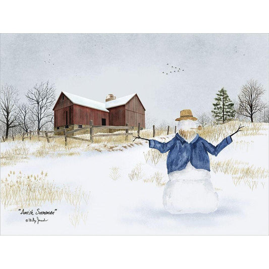 Amish Snowman Black Modern Wood Framed Art Print with Double Matting by Jacobs, Billy