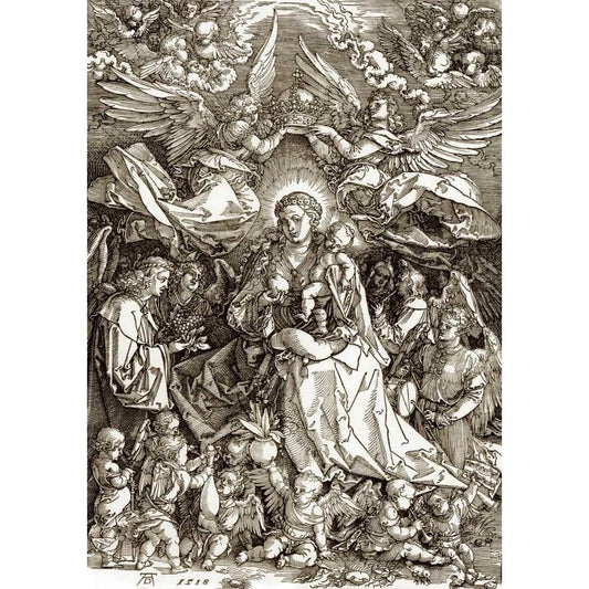 The Virgin Crowned By Two Angels Black Modern Wood Framed Art Print with Double Matting by Durer, Albrecht