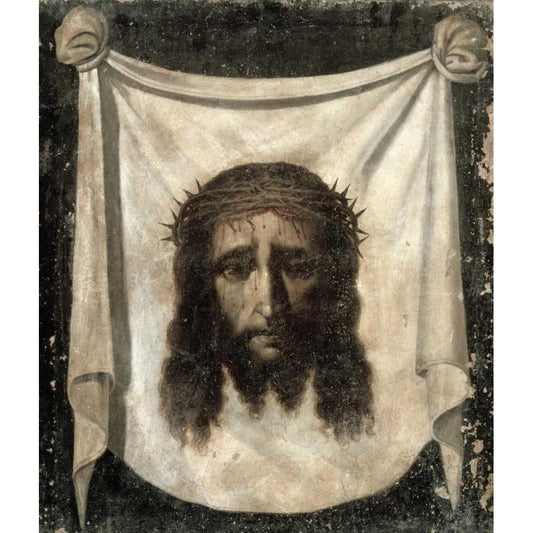 Holy Face - La Santa Faz Black Modern Wood Framed Art Print with Double Matting by De Zurbaran, Francisco