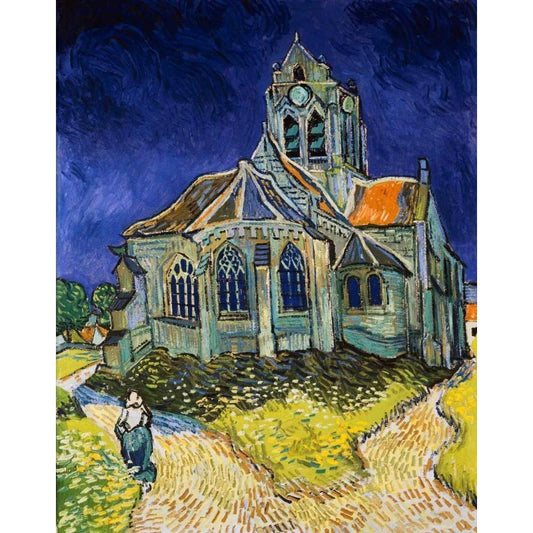 The Church at Auvers Black Modern Wood Framed Art Print with Double Matting by Van Gogh, Vincent