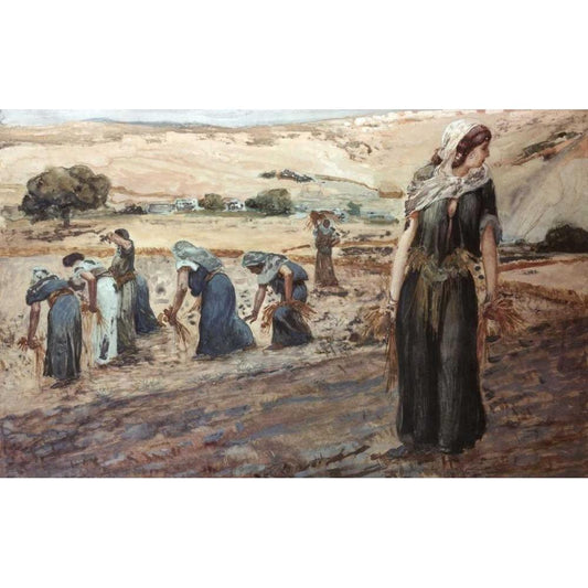 Ruth Gleaning Black Modern Wood Framed Art Print with Double Matting by Tissot, James Jacques