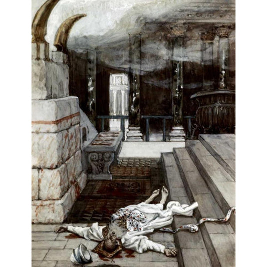Zacharias Killed Between The Temple and The Altar Black Modern Wood Framed Art Print with Double Matting by Tissot, James Jacques