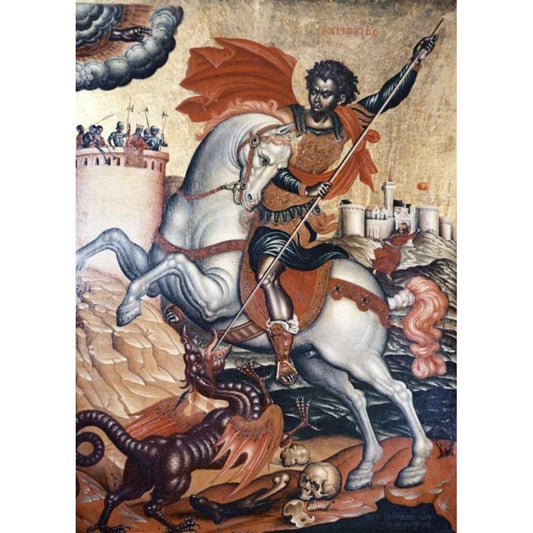 St. George Slaying The Dragon Black Modern Wood Framed Art Print with Double Matting by Tzanes