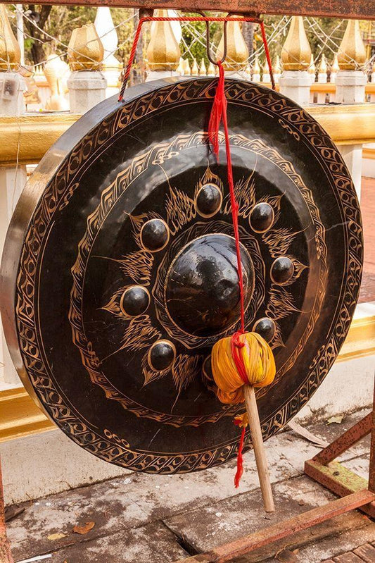 Thailand-Nong Khai Gong in temple courtyard Phra That Bang Phuan temple White Modern Wood Framed Art Print with Double Matting by Haseltine, Tom