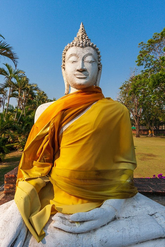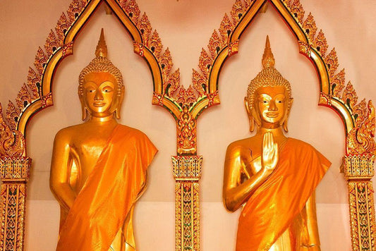Thailand- Ayutthaya. Wat Phra Si Sanphet. Buddha statues. White Modern Wood Framed Art Print with Double Matting by Haseltine, Tom