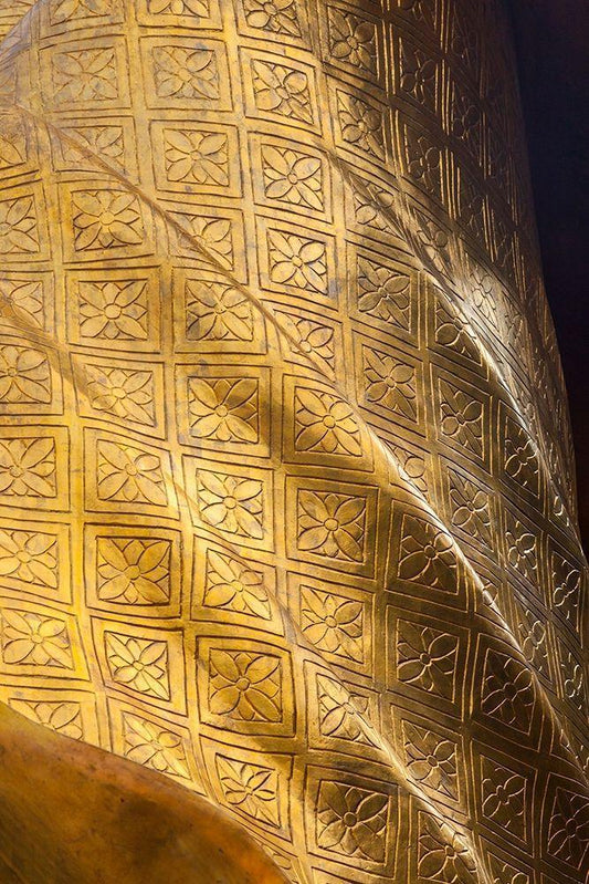 Chiang Mai- Thailand. Wat Phan On. Buddha statue wall decoration. White Modern Wood Framed Art Print with Double Matting by Haseltine, Tom