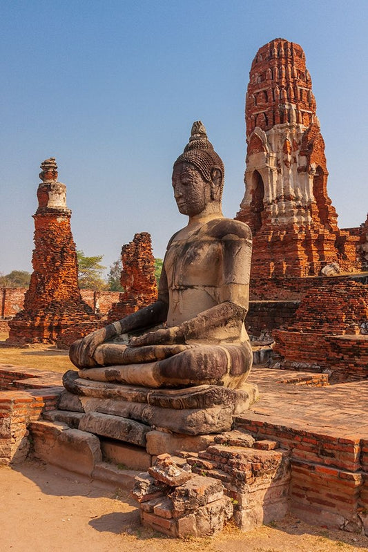 Thailand- Ayutthaya. Wat Mahathat. White Modern Wood Framed Art Print with Double Matting by Haseltine, Tom