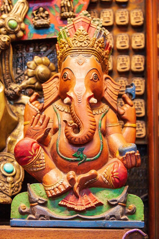 Thailand- Bangkok. Carved and painted wooden statue of Ganesha- or Phra Phikanet. White Modern Wood Framed Art Print with Double Matting by Haseltine, Tom