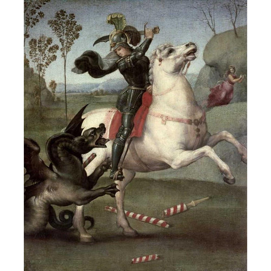 St. George Fighting The Dragon Black Modern Wood Framed Art Print with Double Matting by Raphael