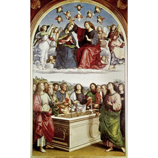 Coronation of The Virgin Black Modern Wood Framed Art Print with Double Matting by Raphael