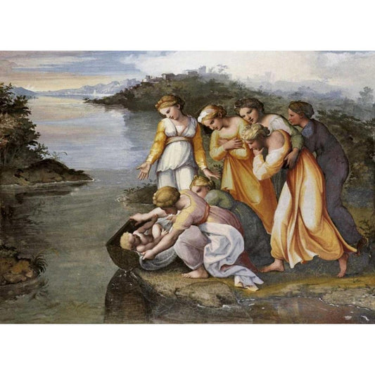 Moses Found In The Bulrushes Black Modern Wood Framed Art Print with Double Matting by Raphael