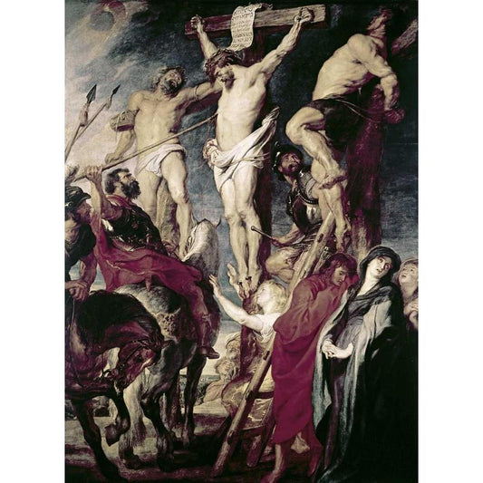 Christ On The Cross Between The Two Thieves Black Modern Wood Framed Art Print with Double Matting by Rubens, Peter Paul